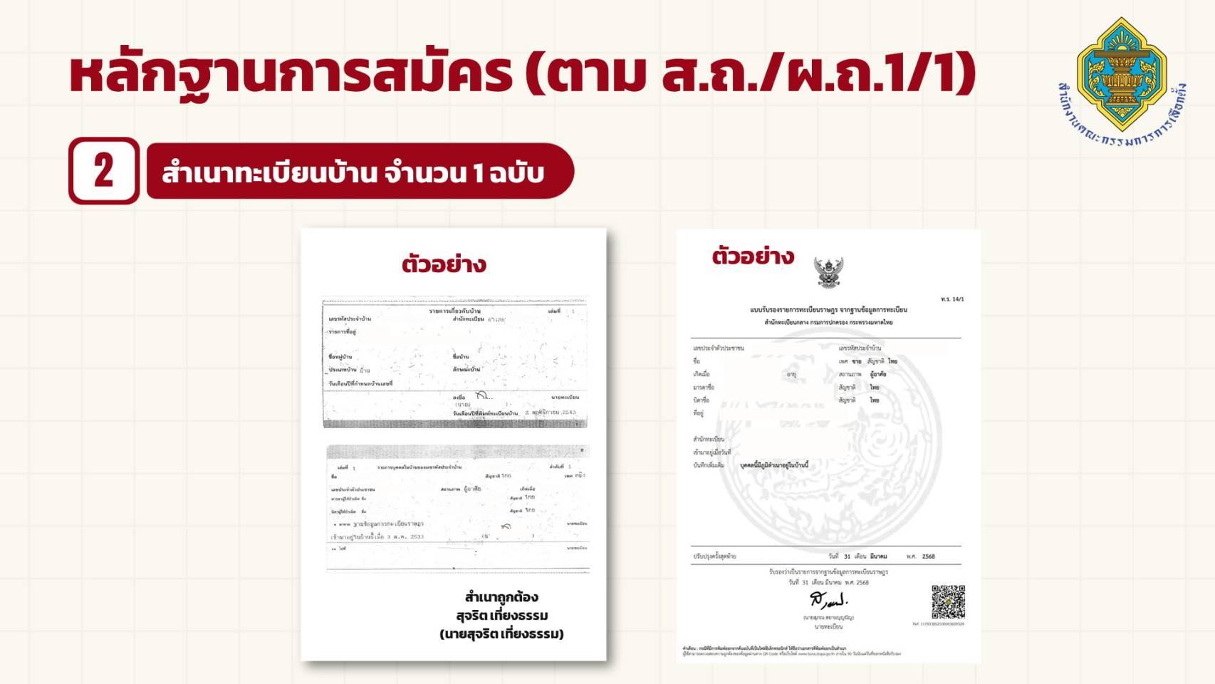 *ข่าวประชาสัมพันธ์* หลักฐานการสมัคร (ตาม ส.ถ./ผู้.1/1)